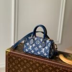This nano speedy handbag is a compact interpretation of Louis Vuitton’s iconic speedy bag. Crafted from monogram jacquard denim, it features the monogram pattern and a sandwashed effect achieved through jacquard knitting techniques. The handles and long shoulder strap offer the choice of carrying it on the shoulder or crossbody, providing a stylish way to carry your essentials. Dimensions: 16.0 x 10.0 x 7.5 cm (Length x Height x Width)
