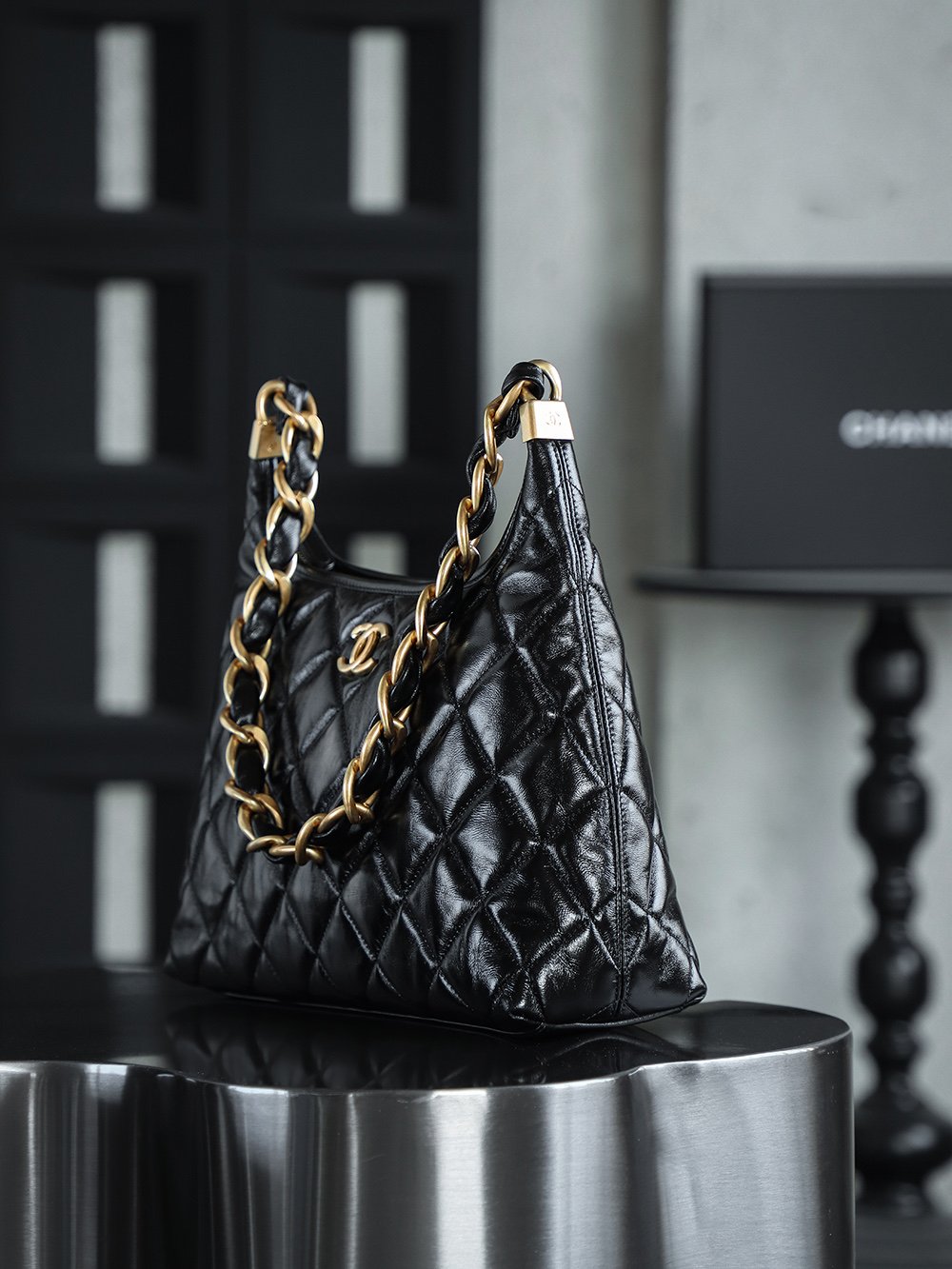 The beauty of the large size lies in its effortless, laid-back vintage charm. The chunky chain is lightweight, casual, and relaxed yet stylish. The black oil-waxed leather pairs almost perfectly with everyday outfits, combining practicality and aesthetics!