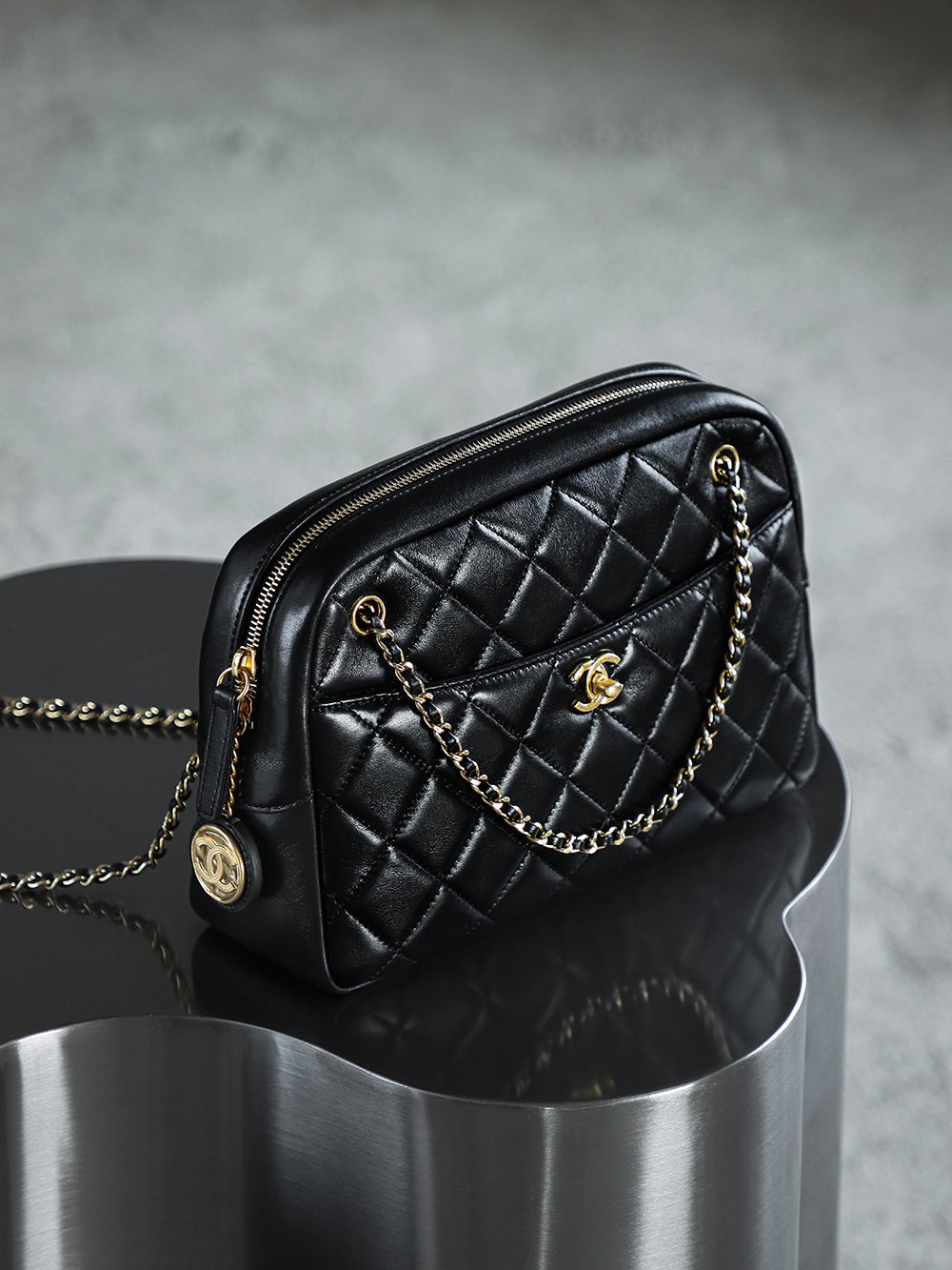 The coin camera bag draws inspiration from vintage cameras. Its square yet rounded silhouette resembles an exquisite antique camera, exuding a rich retro charm.