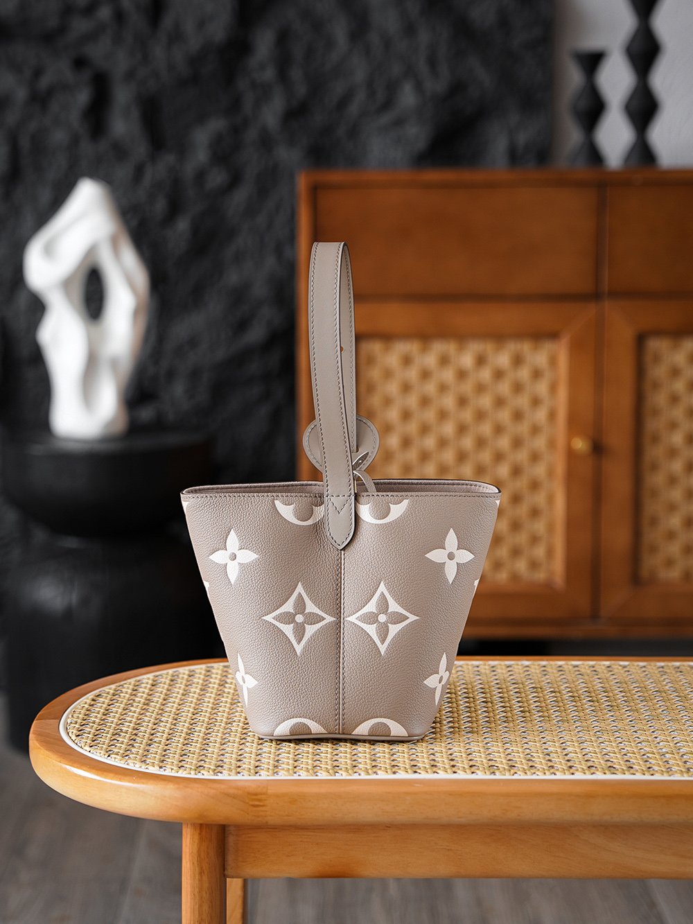 ALL IN BB Handbag features a classic elephant gray base, blending sophisticated gray tones into full-grain embossed cowhide leather. The delicate leather texture reveals a soft matte finish under light, eschewing bold colors for an effortless elegance through its calm, understated gray palette.