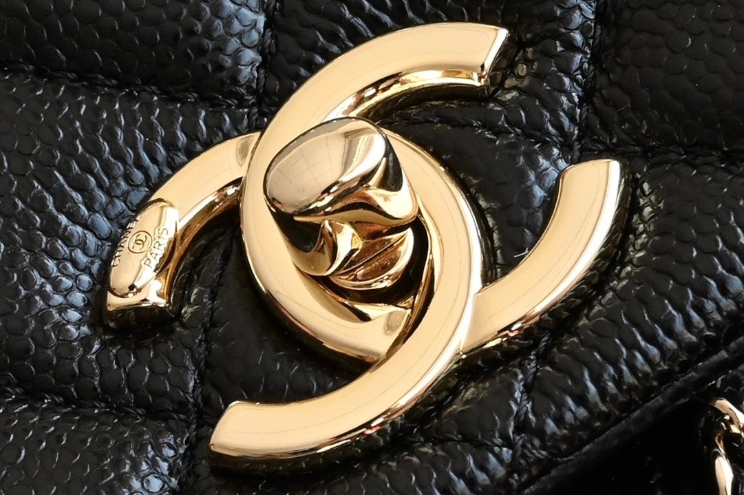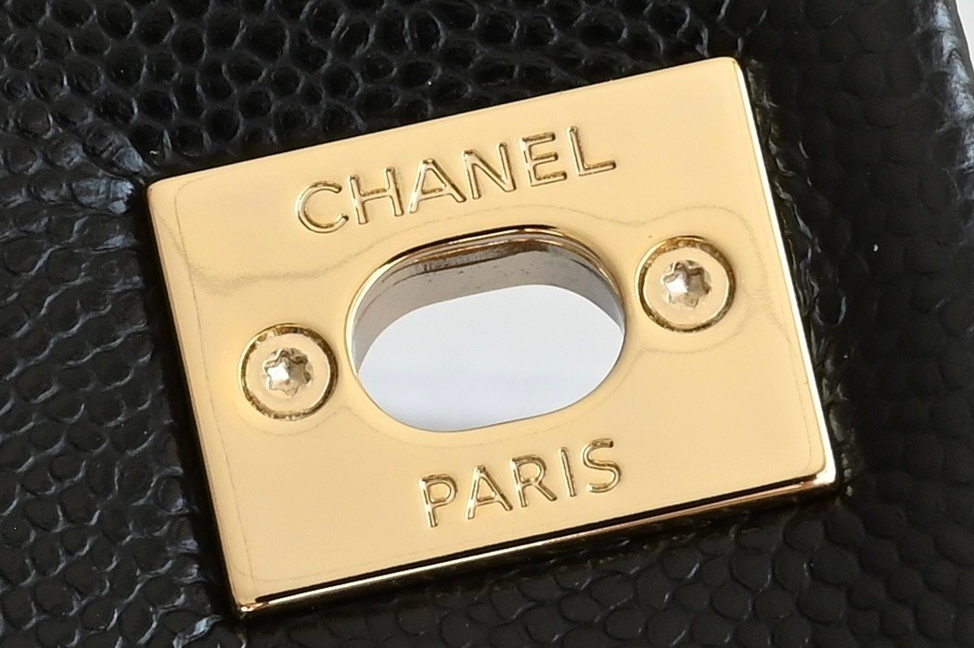Classic Fla Classic Flap Bag Black Gold Large Grain