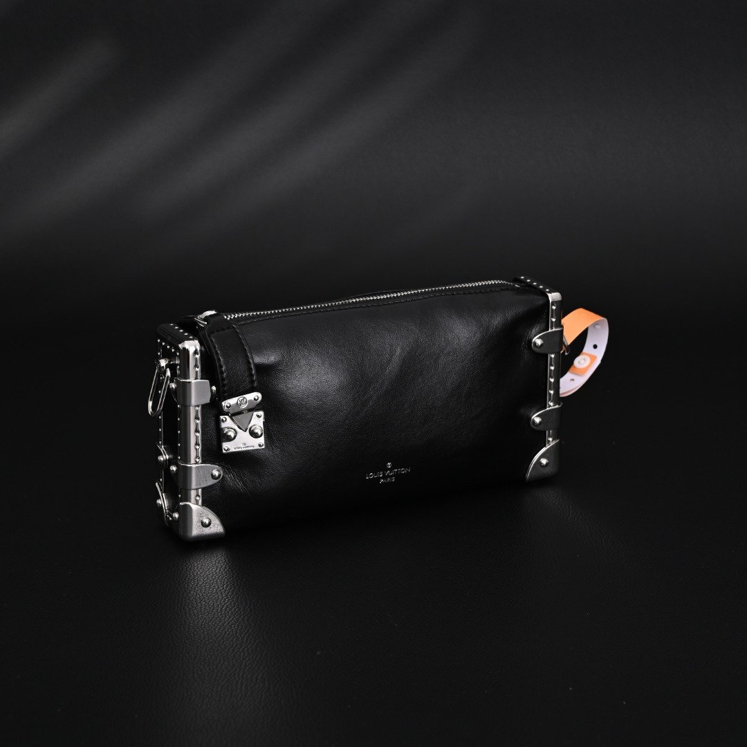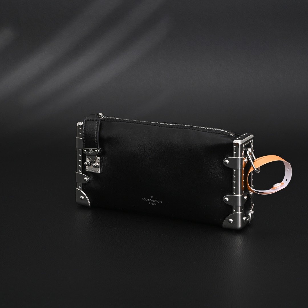 This Slim Trunk design draws inspiration from Louis Vuitton’s timeless classic hard trunks, creating a fashion-forward handbag. Crafted from exceptionally supple calf leather, it features a riveted frame and a silver S-lock metal clasp, radiating a rock-and-roll spirit. The handbag comes with a detachable chain strap and an adjustable, detachable shoulder strap, allowing for multiple carrying options.
