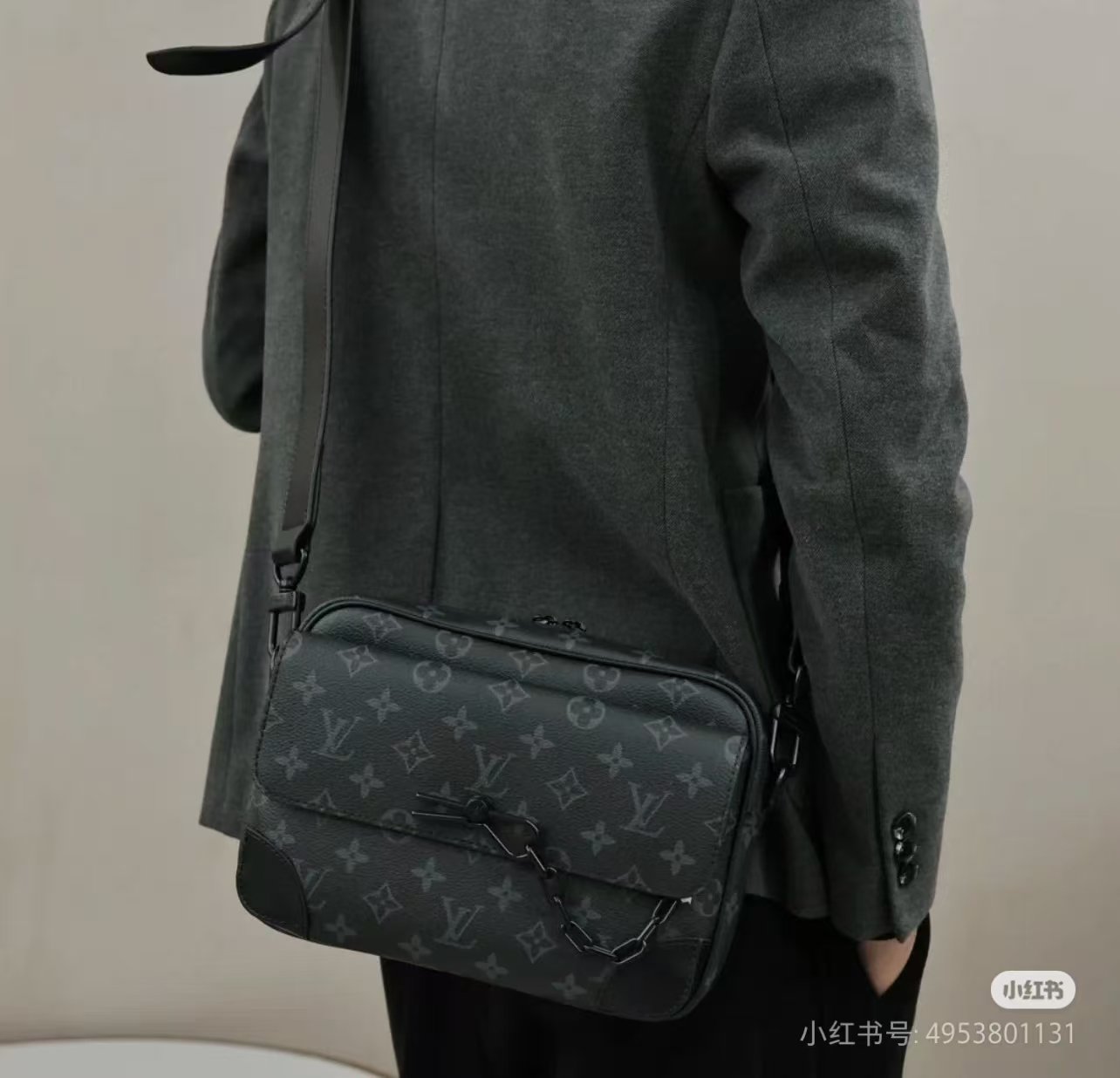 Steamer Series Messenger Bag for Men – Undeniably a Bestseller! Combines numerous classic Louis Vuitton elements: monogram canvas, adjustable leather shoulder strap, chain details. Features dual compartments: exterior flap pocket and interior zipper pocket. Ample capacity for daily casual use – a worthwhile purchase!