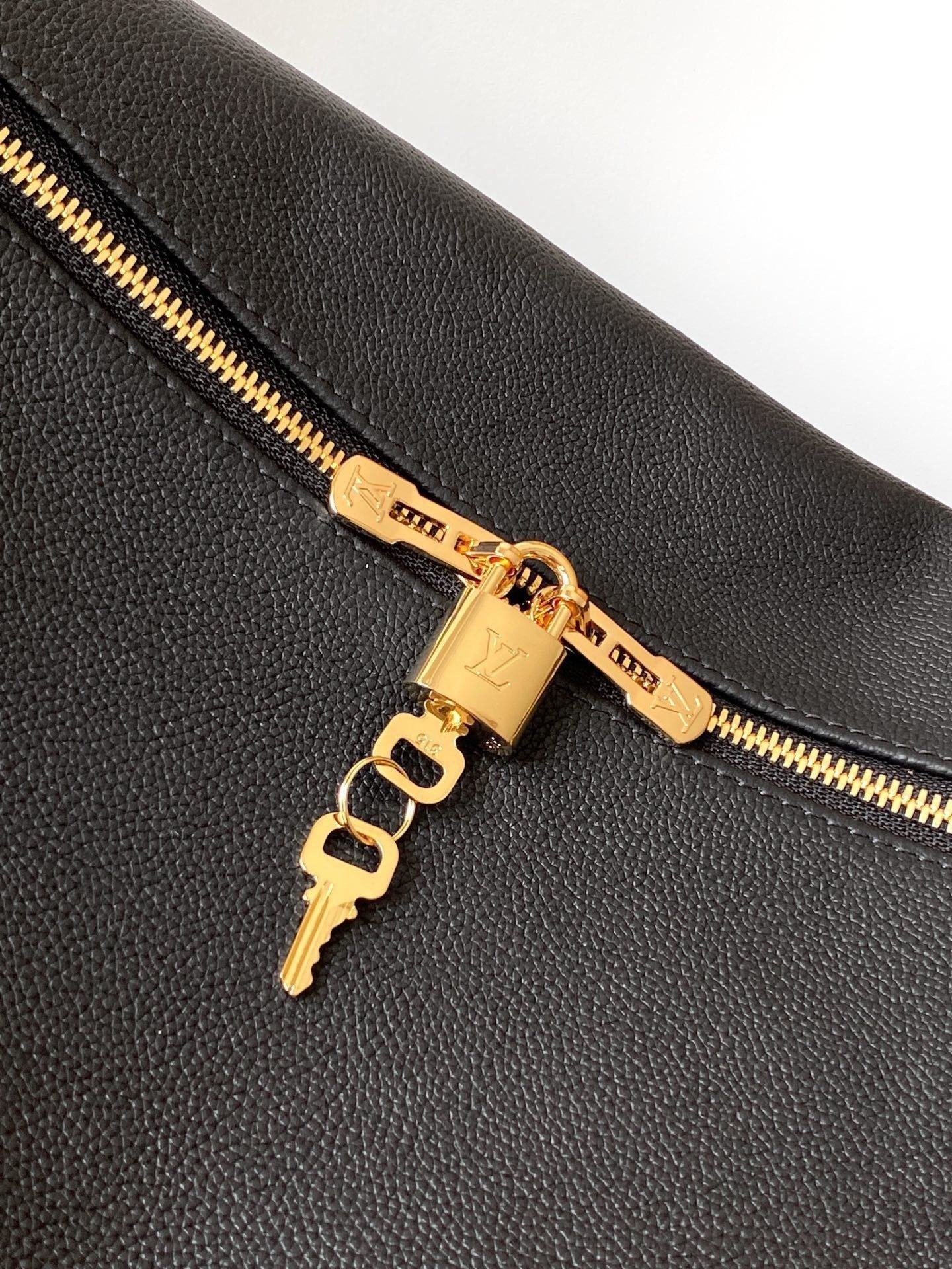 The Express Travel large handbag infuses the classic Keepall with a touch of elegance, showcasing Nicolas Ghesquière’s keen insight into the rhythm of urban travel. Crafted from fine-grain calf leather with Monogram canvas accents, its supple structure offers ample space. Adjustable handles and a detachable rolled leather handle provide versatile carrying options.