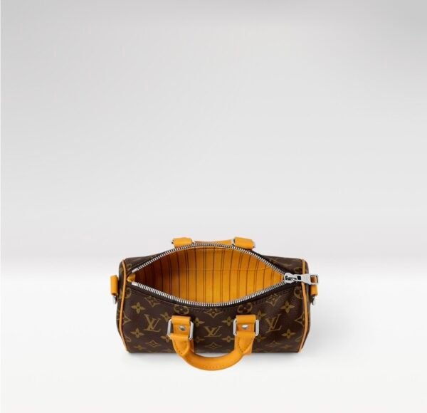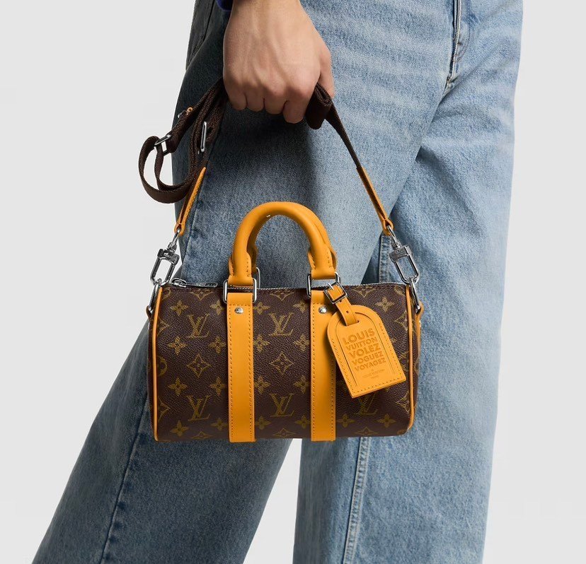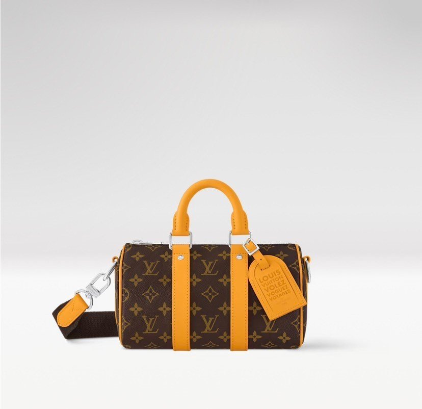 This LV Colormania Keepall Bandoulière 25 urban tote features Monogram Macassar canvas and colorful leather accents, with side straps and top handles echoing the hues of its textile lining. The traditional luggage tag is reimagined with the brand’s vintage “Volez, Voguez, Voyagez” emblem, adding a touch of sophistication. 25.0 x 15.0 x 11.0 cm (Length x Height x Width)